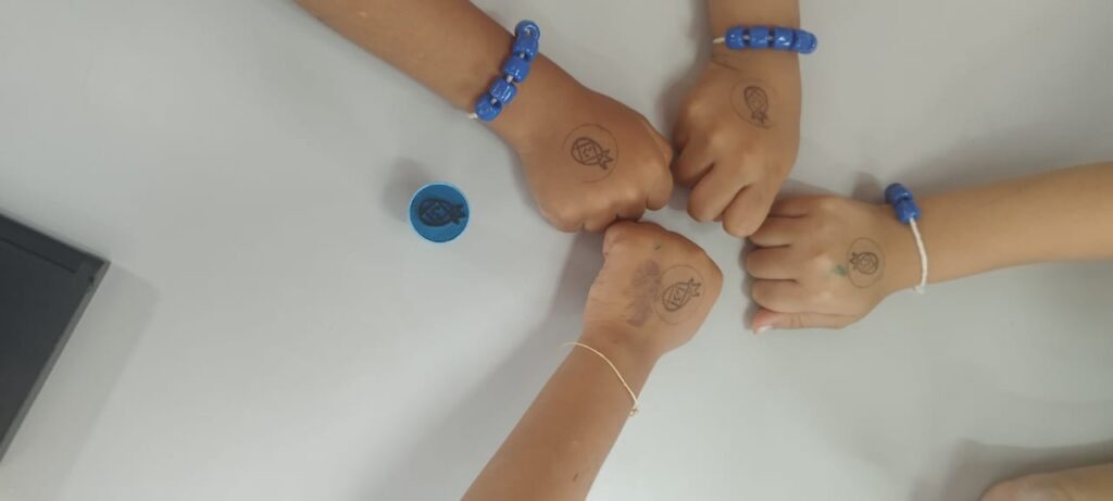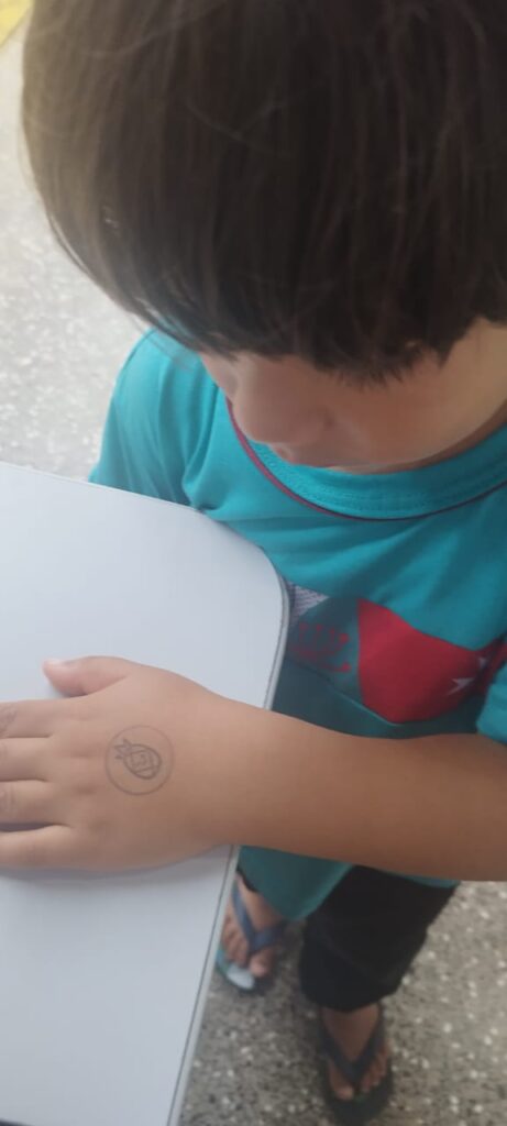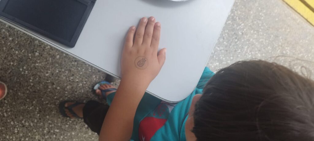 Todas as crianças recebem o carimbo, inclusive aquelas que não se alimentaram de forma satisfatória, utilizando-o como incentivo para que continuem progredindo.