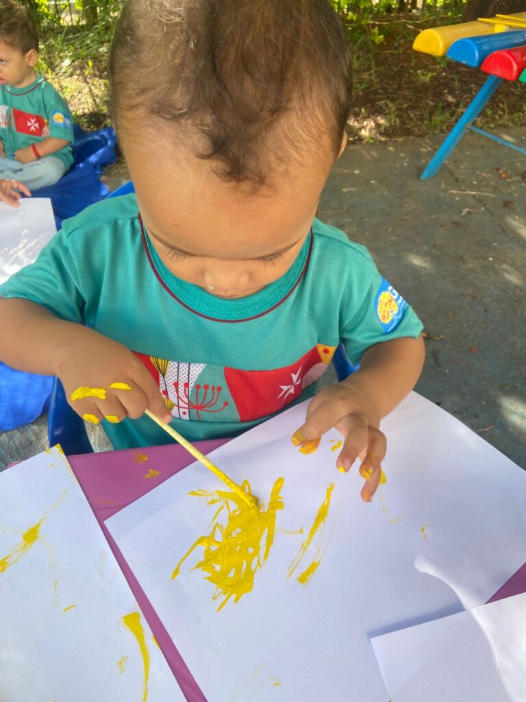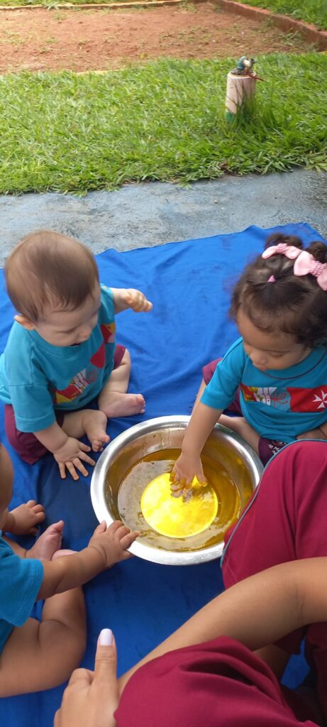 A cor amarela é alegre e luminosa, despertando sensações de energia, calor e felicidade nos bebês. No contexto educativo, pode ser explorada por meio de objetos, brinquedos e elementos da natureza, como o sol e as flores, estimulando a percepção visual e a curiosidade. O contato com a cor amarela contribui para o reconhecimento das cores e enriquece as experiências sensoriais de forma leve e significativa.