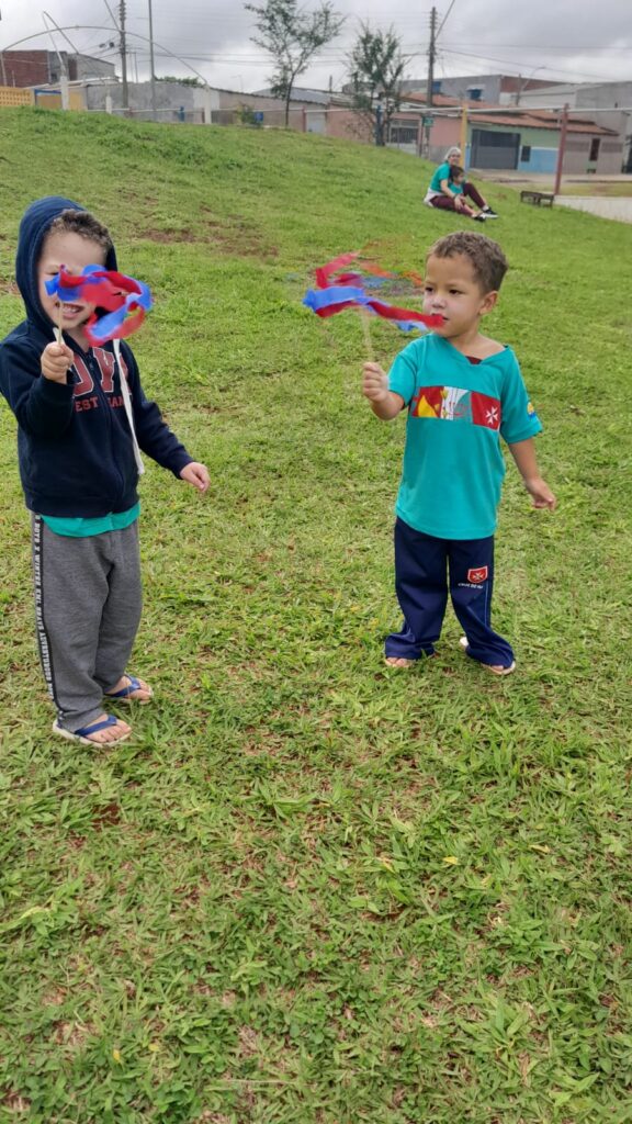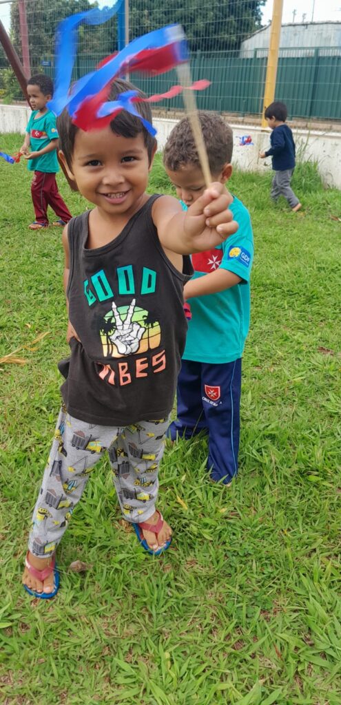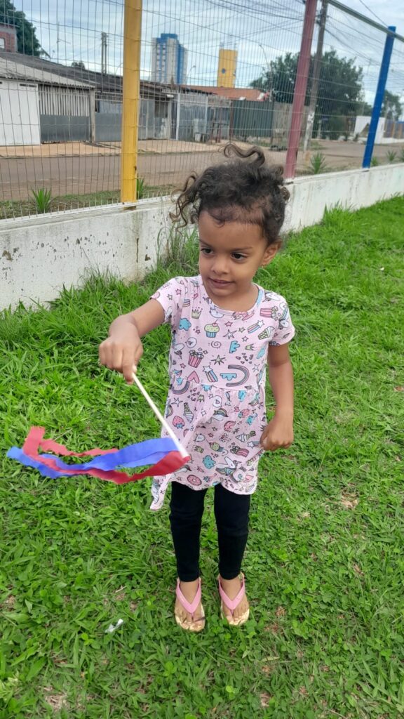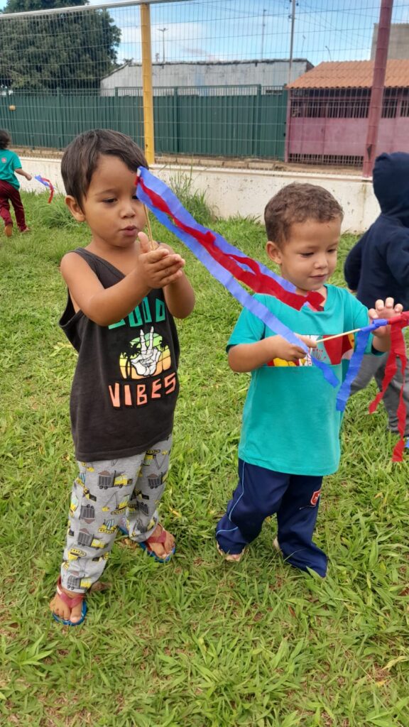 Proposta com balangandã, confeccionado com palito e papel crepom.