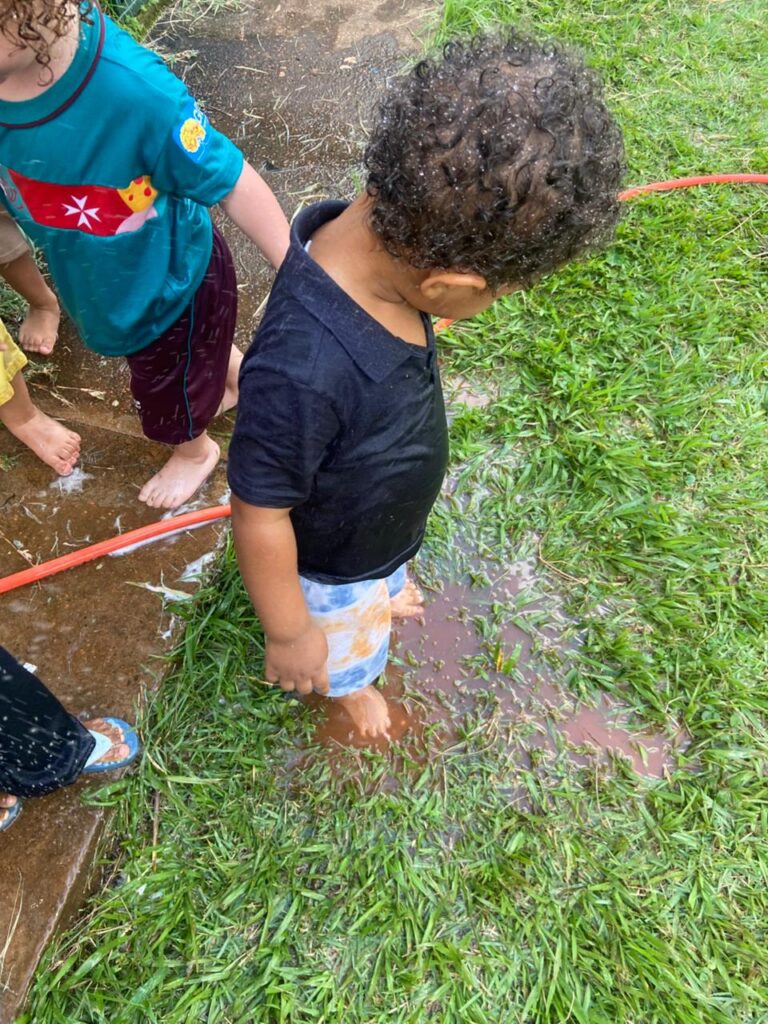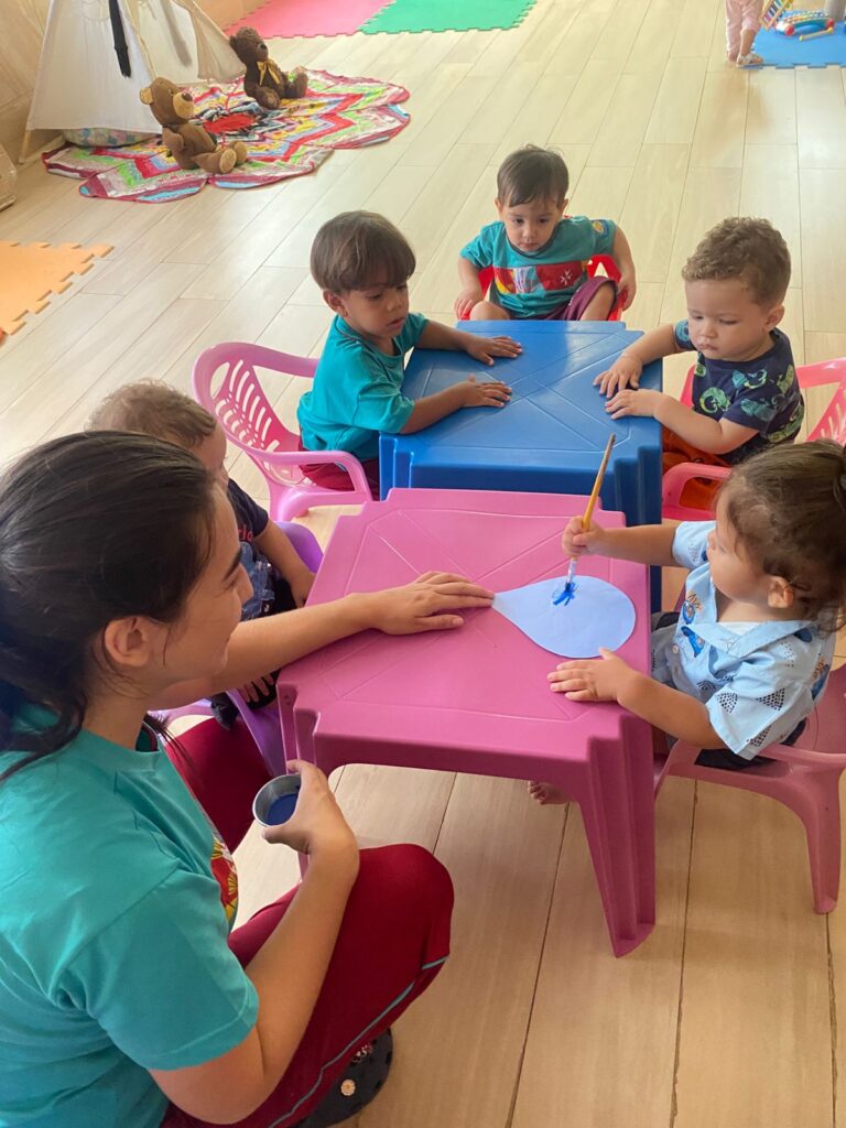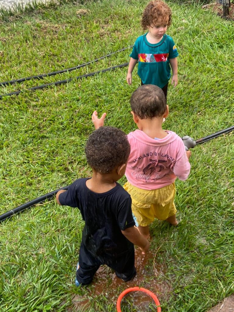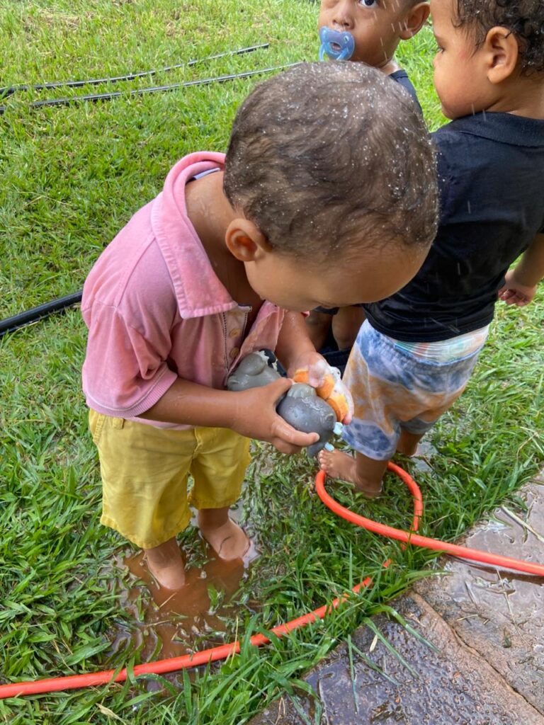 A atividade com água proporciona aos bebês momentos de exploração e descobertas. Ao brincar, desenvolvem a coordenação motora, a percepção sensorial e a curiosidade, vivenciando diferentes sensações. Essa experiência também favorece o relaxamento e a interação, tornando o aprendizado leve e significativo.